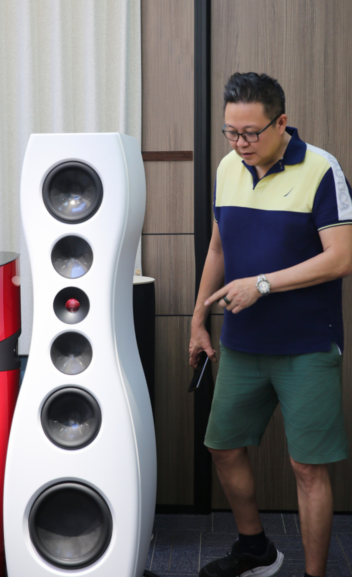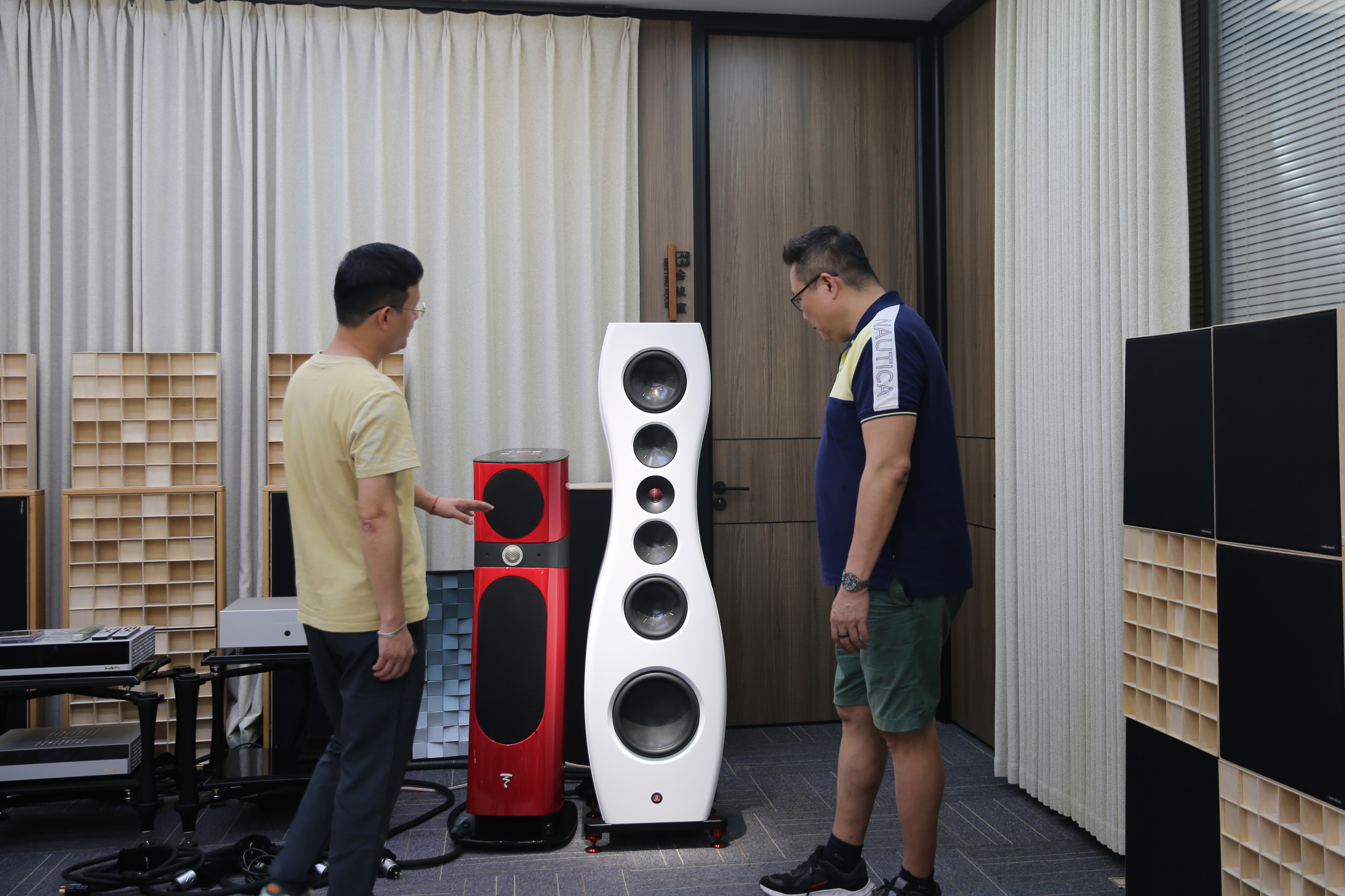 Under the guidance of the Lingke team, Bok focused on experiencing the immersive listening experience of the flagship product "Perception 211 Active Tower Speaker". According to Mr. Yang, the speaker adopts a four frequency division 7-unit design, with a beryllium diaphragm for the high-frequency unit to ensure clear details, and a graphene+characteristic long fiber multi-layer composite process for the mid low frequency diaphragm to optimize resonance; At the same time, it is equipped with an electronic crossover design. The high-frequency, mid-range, low-frequency, and subwoofer units are independently driven by 200W class AB amplifiers, 200W class AB amplifiers, 400W class AB amplifiers, and 1000W class D amplifiers, respectively, balancing sound quality and power.